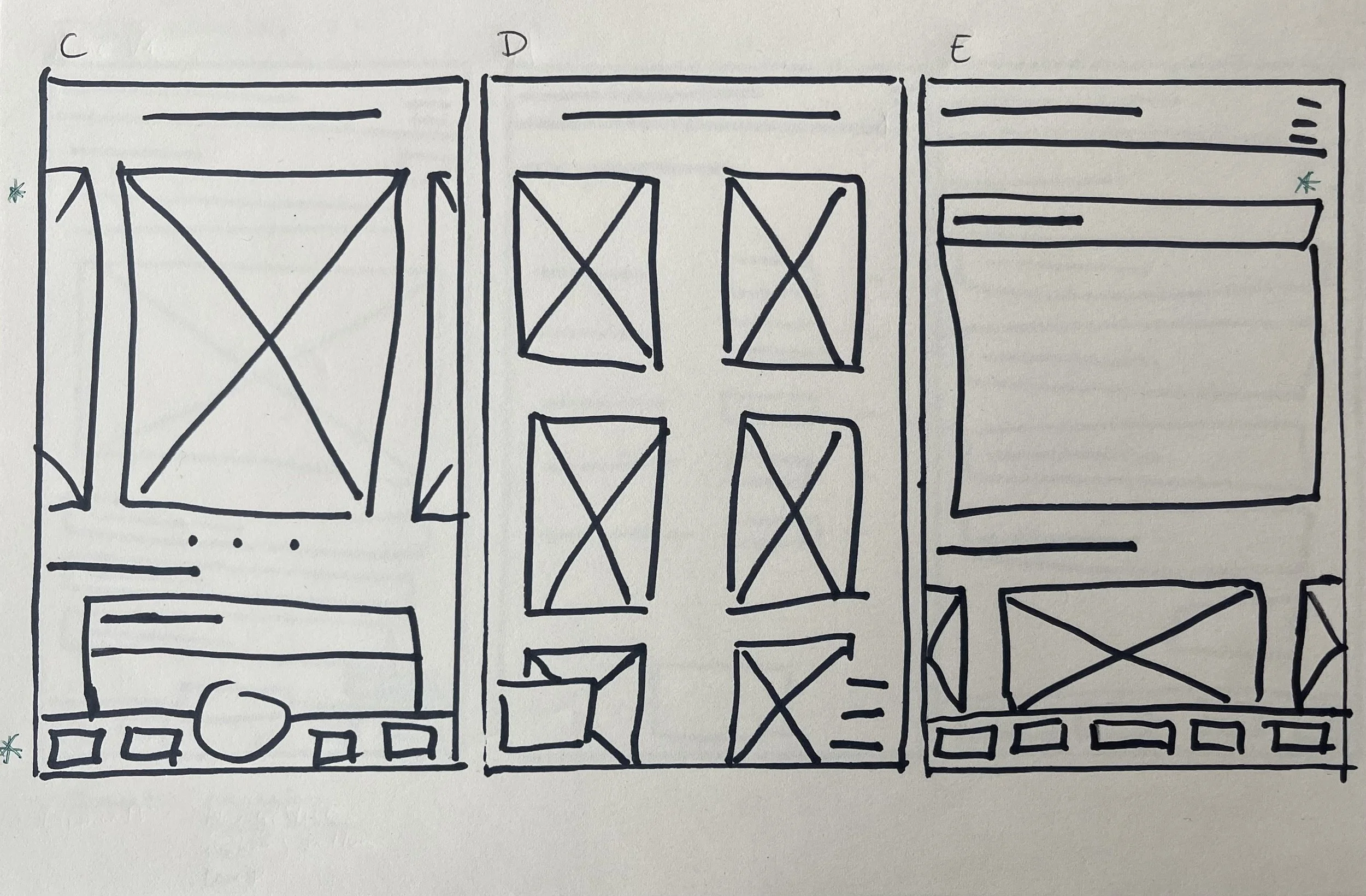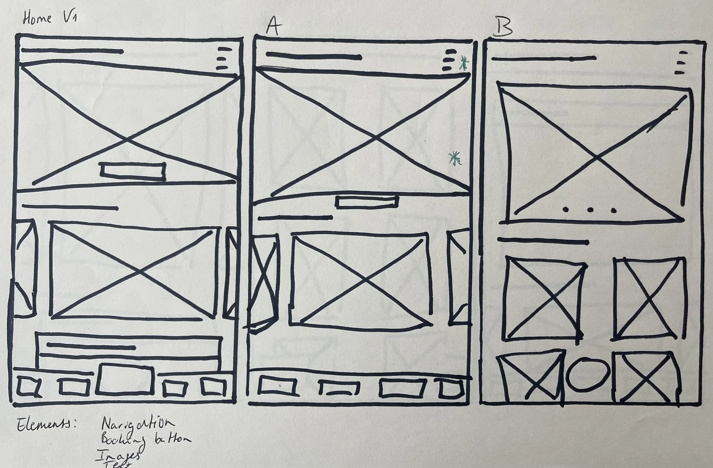 Through paper wireframes I ensured that the elements needed to address user pain points were made clear to continue to digital wireframes. For the home screen, I prioritised a quick and easy overview of current exhibitions and events, plus a clear booking button to buy tickets easily.