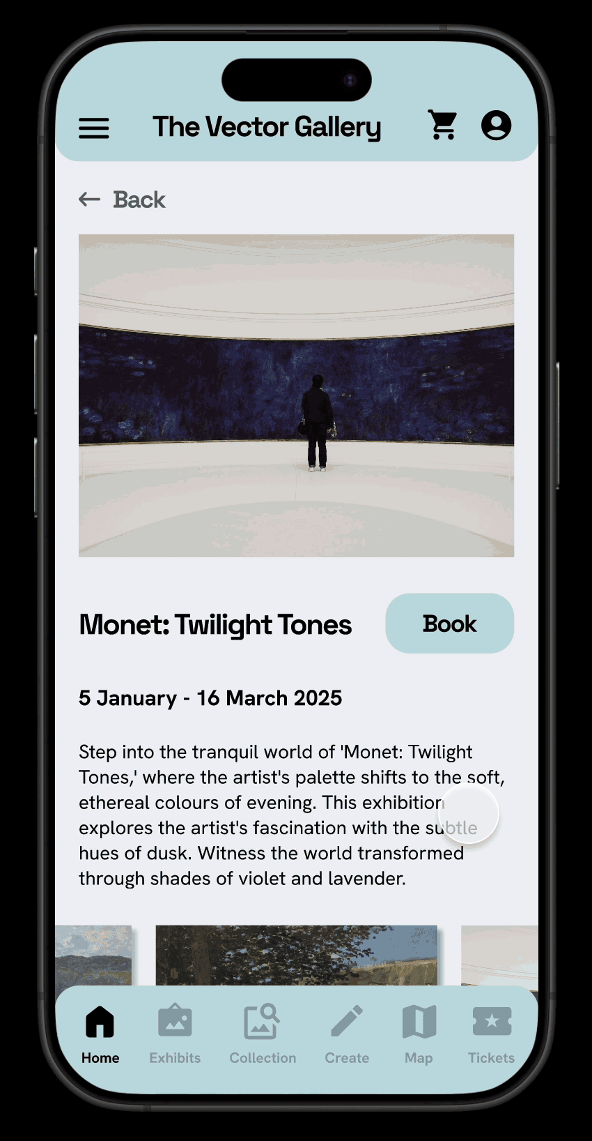 The Vector Gallery app will let users choose and book tickets to an exhibition to go to for users who aren’t familiar with the art world.
