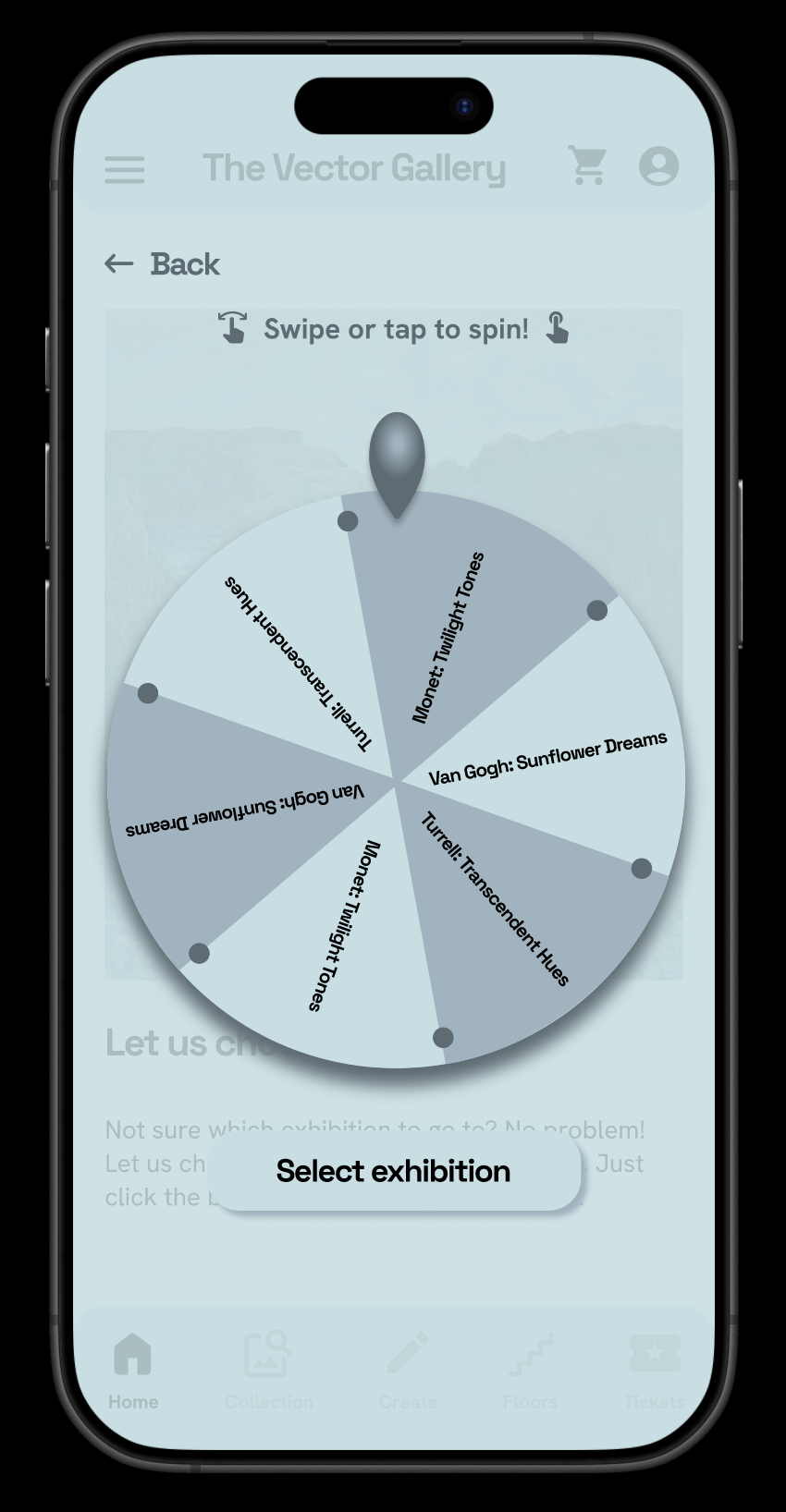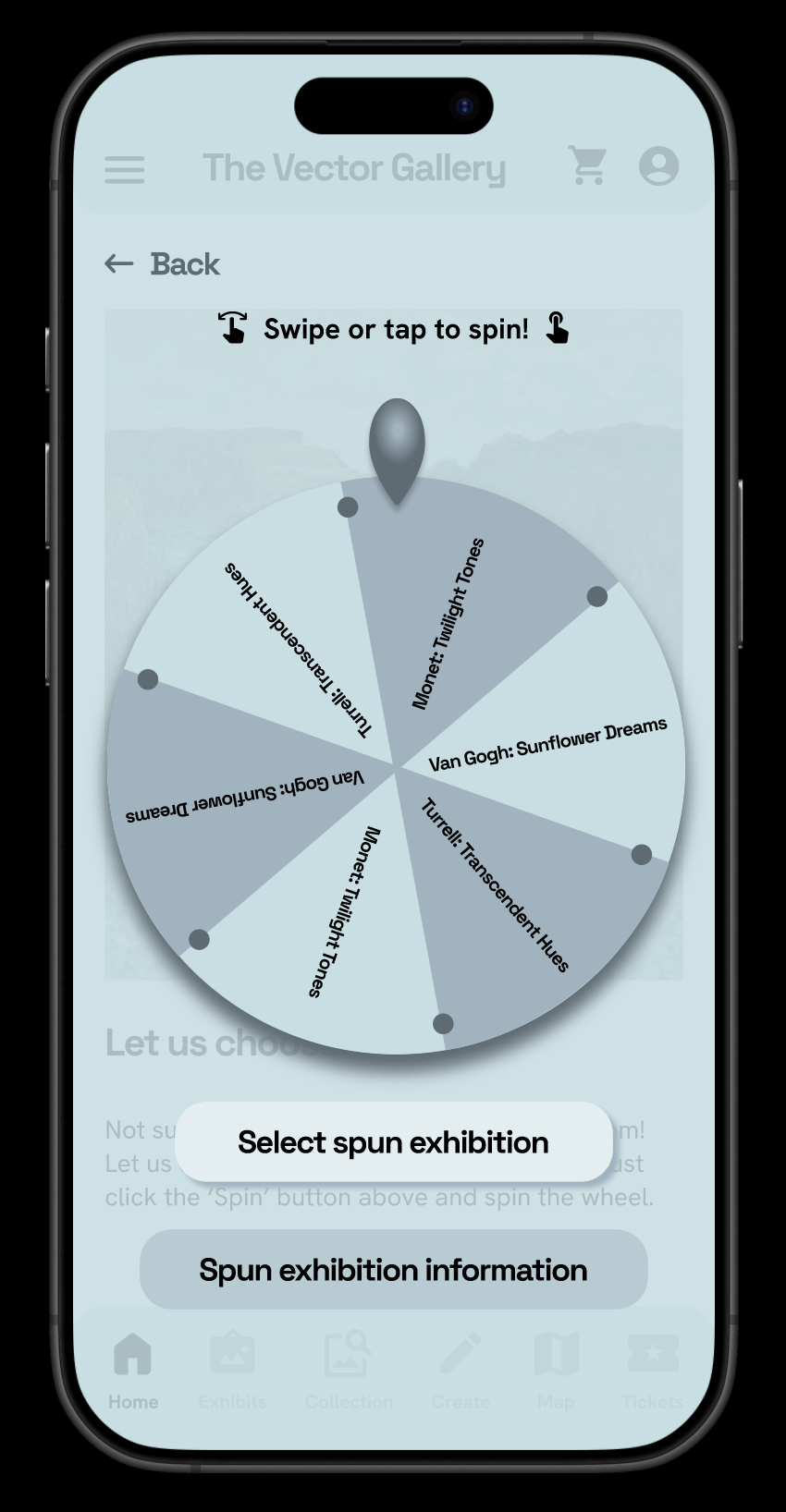 Users need the ‘Swipe or tap to spin’ text to be marked clearer for the random exhibition spinner