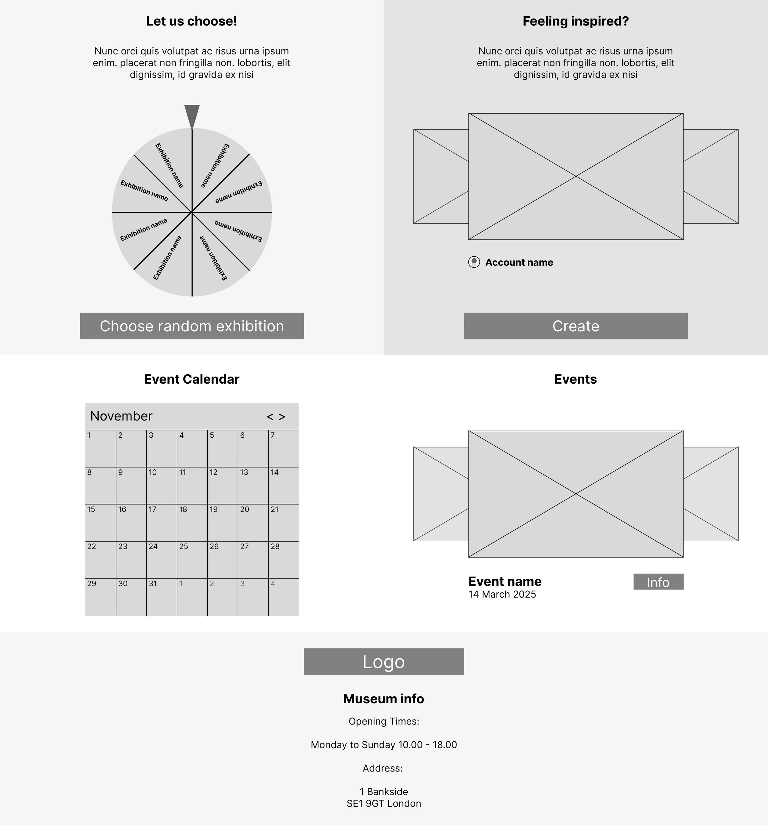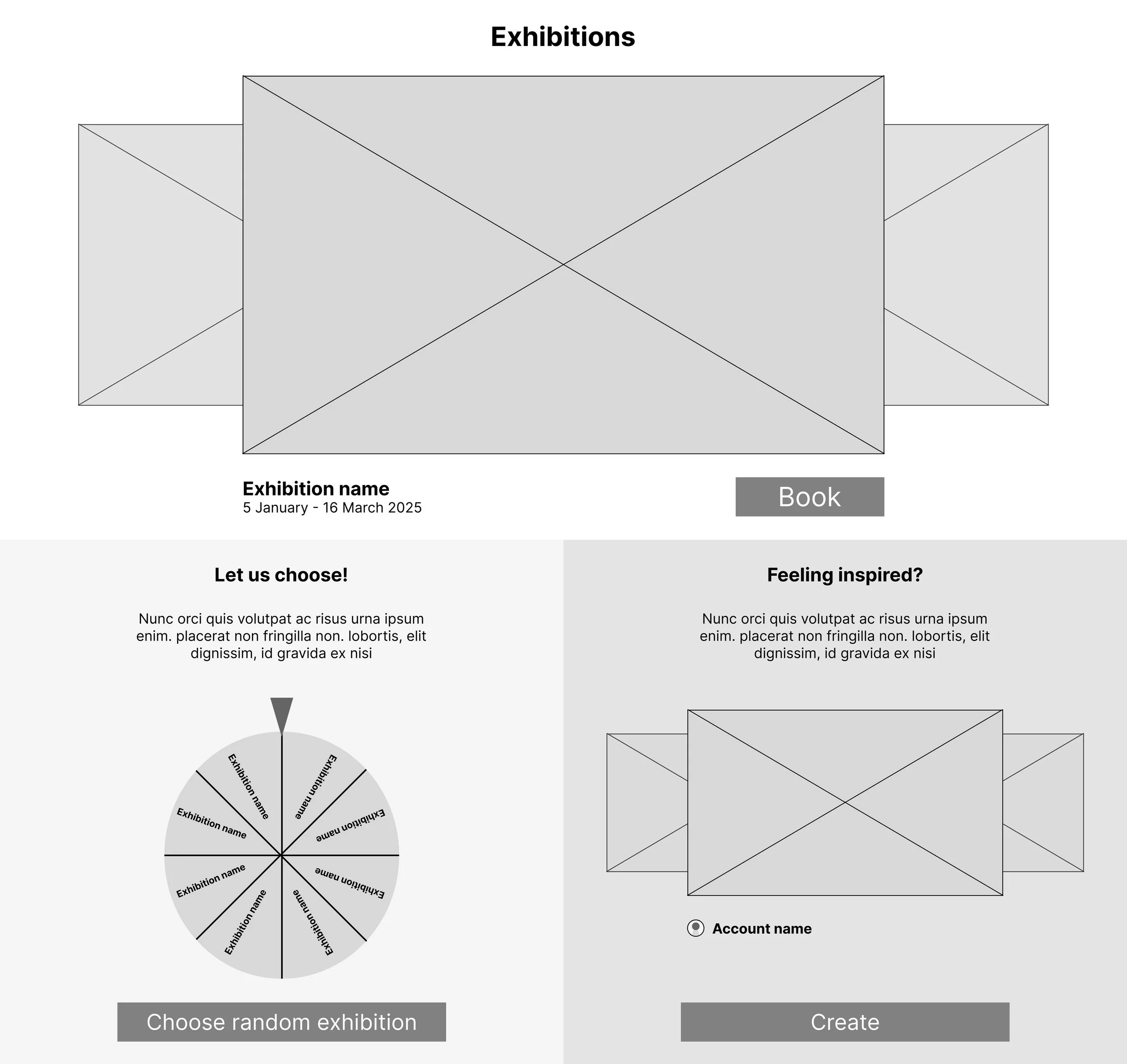 Randomised exhibition tool if user is not sure which exhibition to go to