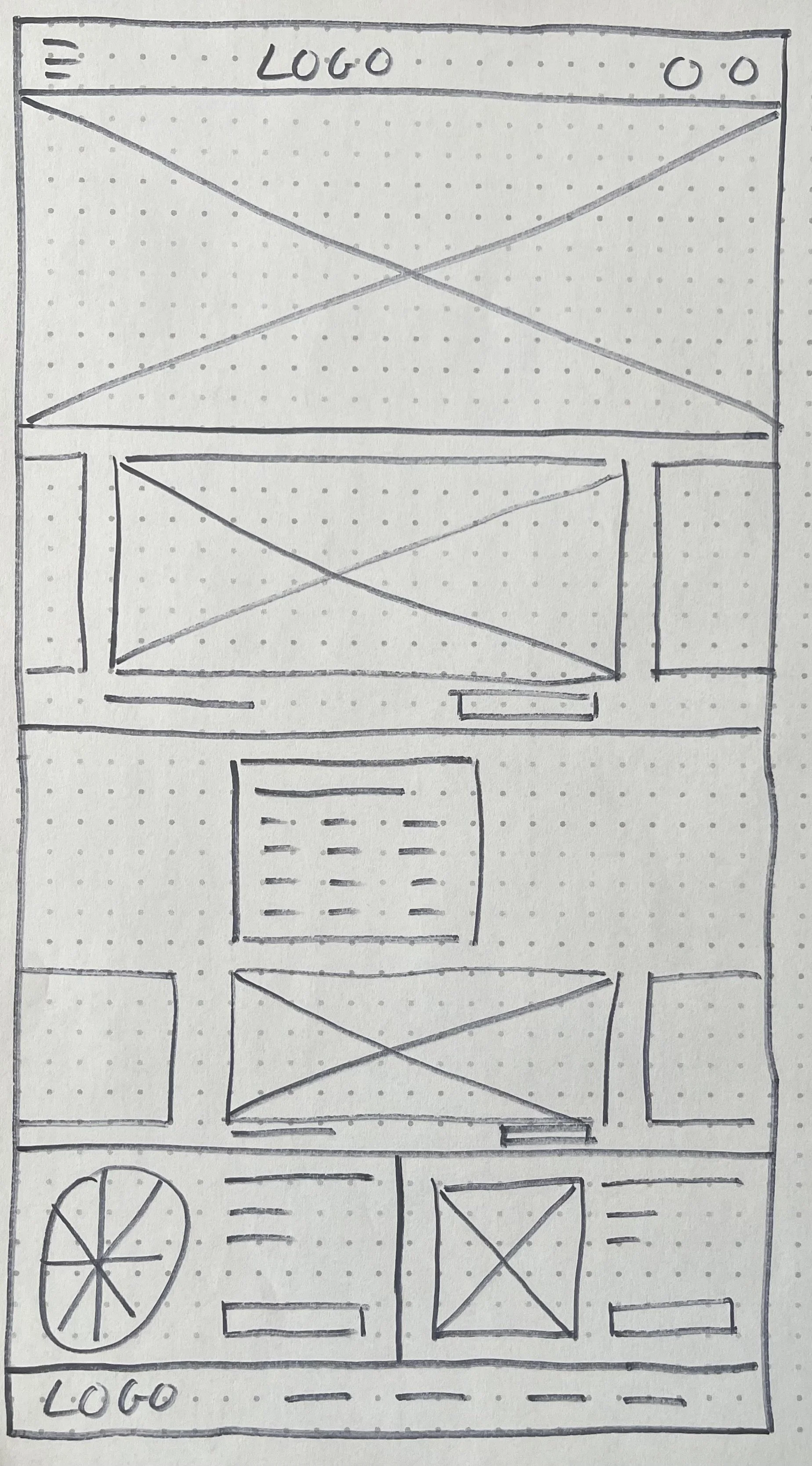 To make sure the site would be fully responsive, I started working on designs for additional screen sizes. I made paper wireframes of the home screen for tablet and mobile, as users use the site on different devices.