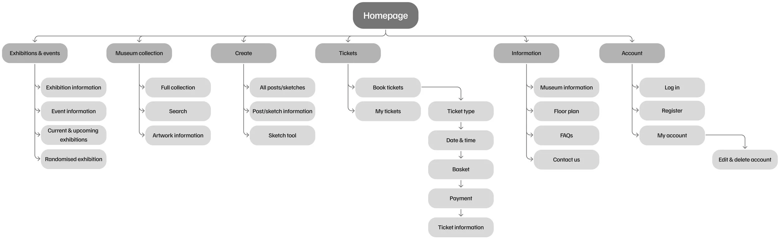 Oscar’s user journey showed me the flow a user might go through to decide what exhibition to go to and helped me pin point the benefits of creating a website with a clear overview of exhibitions and an easy way to buy tickets, for a user who isn’t technologically savvy.