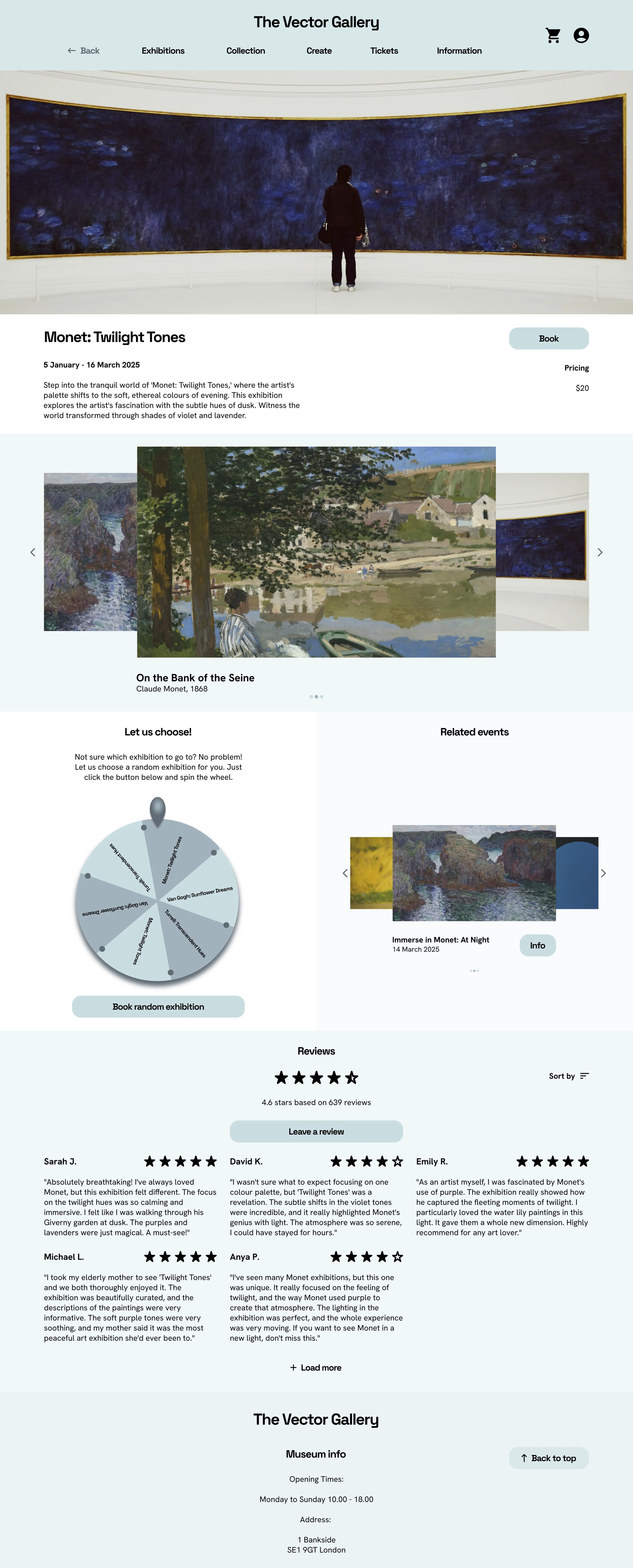 I’ve created a responsive to help people, who are not very familiar with the art world, to choose what exhibition they want to go to and let them easily book tickets.