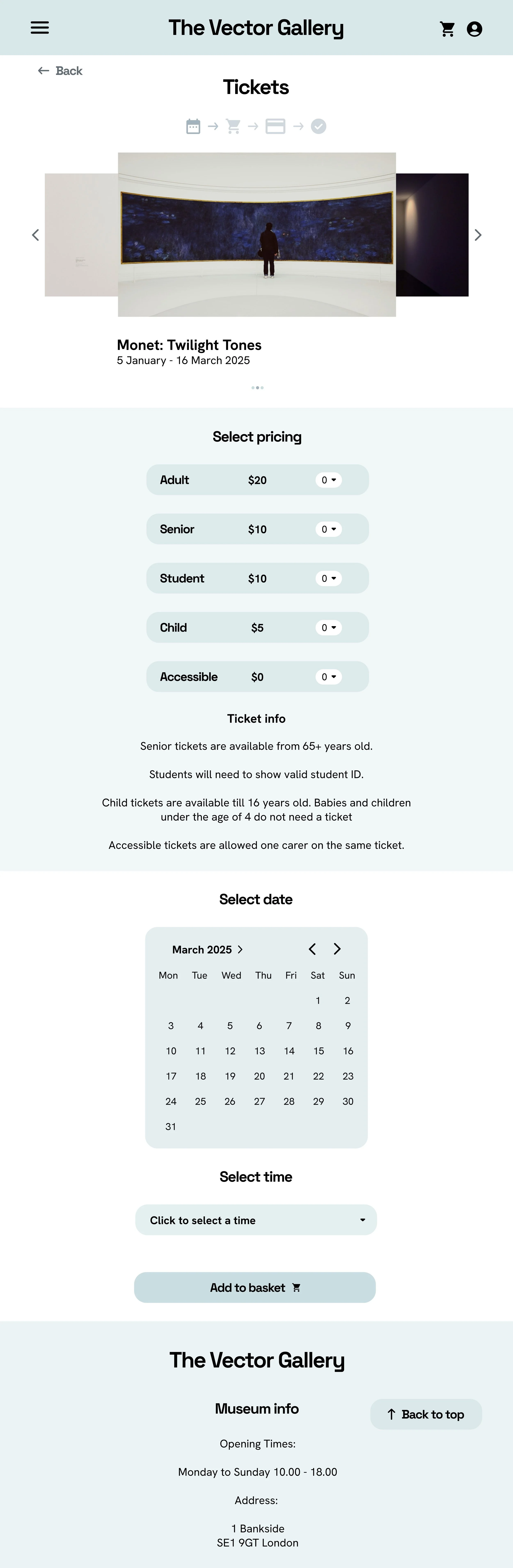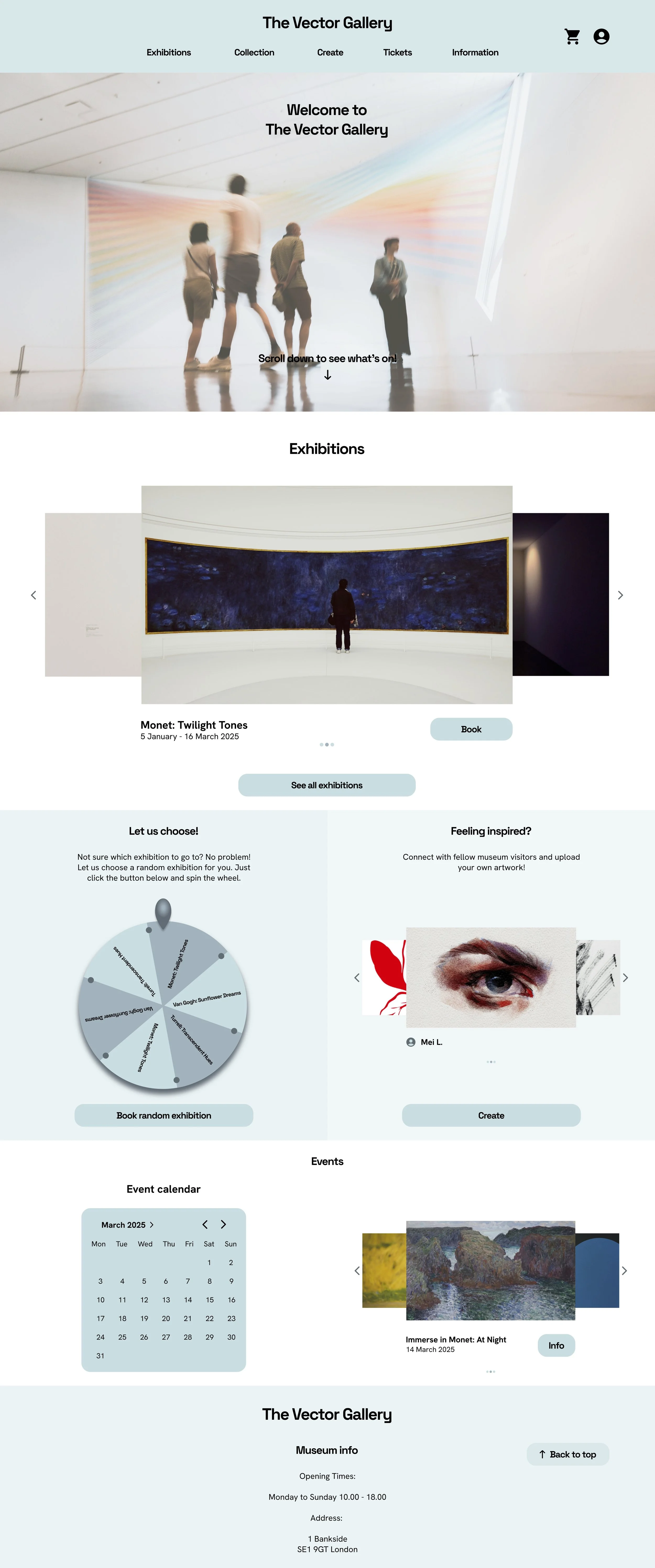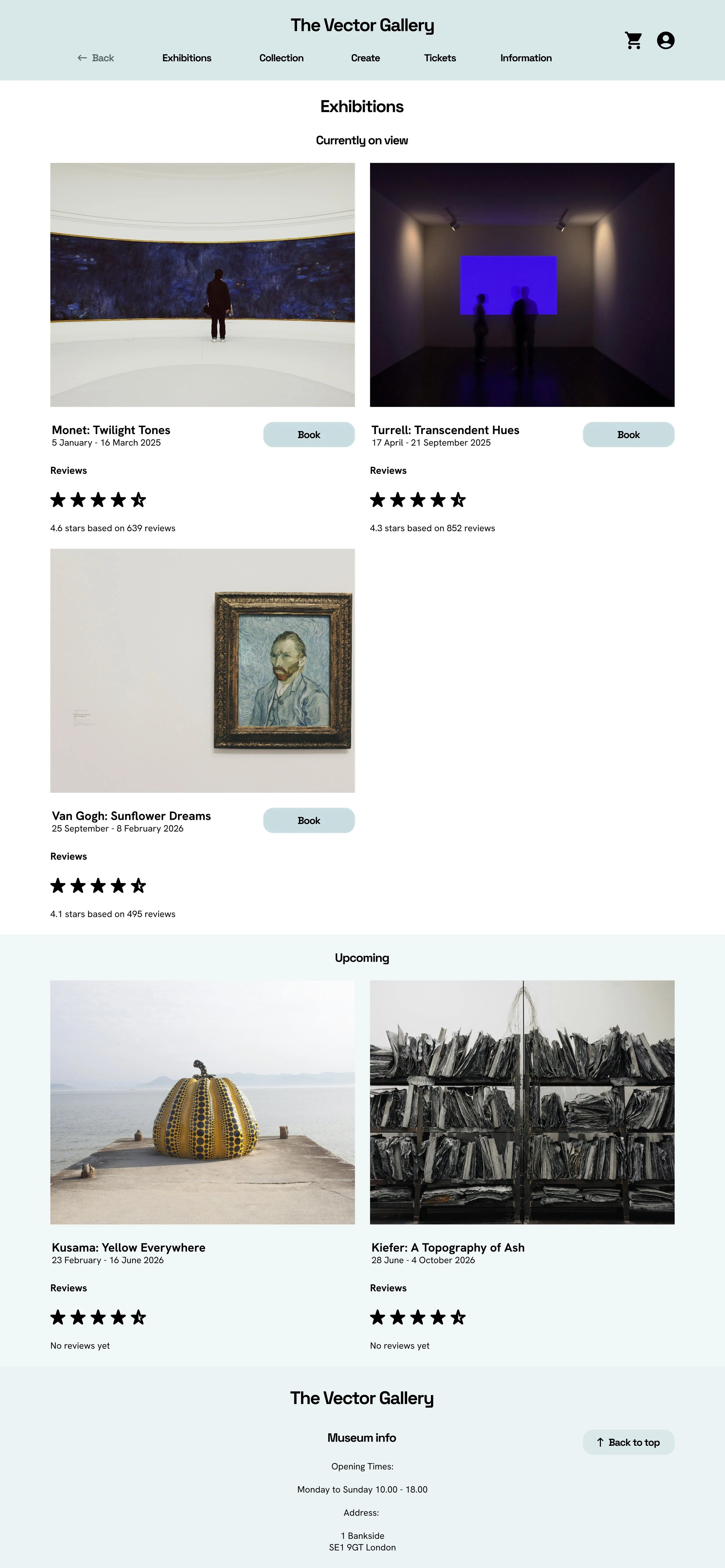 The Vector Gallery website will let users choose and book tickets to an exhibition to go to for users who aren’t familiar with the art world.